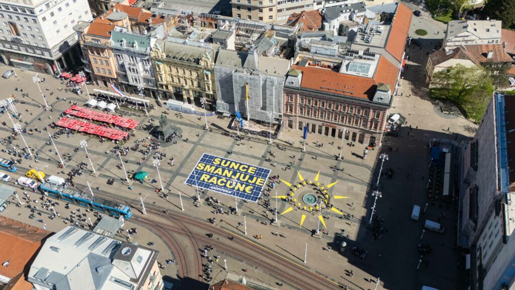 Greenpeace je u petak sa središnjeg zagrebačkog Trga poručio da je domaća solarna energija najjeftiniji i najsigurniji način za obuzdavanje rasta cijena. Ratni sukobi, pogotovo aktualna blokada Hormuškog tjesnaca, povećavaju nesigurnost i potiču inflaciju. Reagirajući na takav razvoj događaja, aktivisti su zagrebački Manduševac “ukrasili” sunčevim zrakama uz golemu poruku da je sunce rješenje za smanjenje računa. Prema nedavnoj Greenpeaceovoj studiji koju je izradio tim stručnjaka sa zagrebačkog FSB-a, Hrvatska može imati 100% obnovljivu električnu energiju već do 2030. godine.