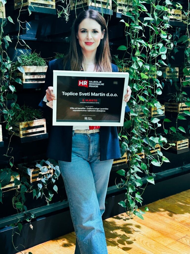 Drugo mjesto na regionalnoj razini nije samo priznanje za jedan projekt, već potvrda strateškog smjera razvoja kompanije. Terme Sveti Martin nastavljaju graditi organizacijsku kulturu u kojoj su ljudi u središtu, jer upravo su zaposlenici temelj svakog dugoročnog uspjeha.
