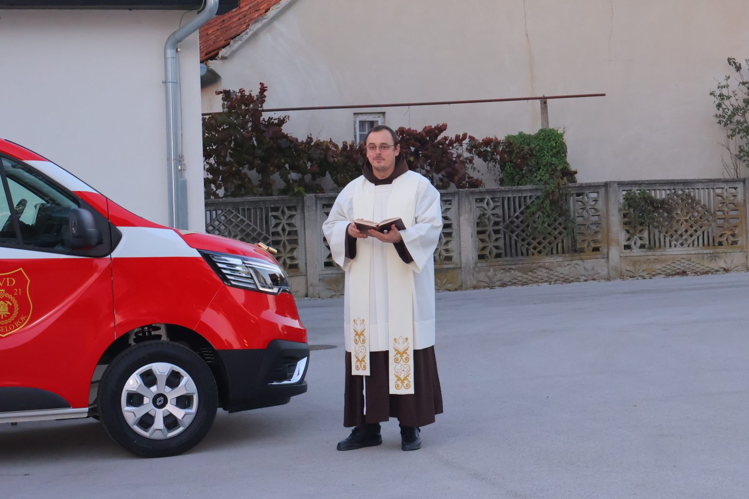 Vozilo marke Renault blagoslovio je župni vikar župe sv. Nikole biskupa Čakovec fra Matija Marijić, a ključeve predsjedniku DVD-a Novo Selo Rok Anđelku Furdiju uručio je predsjednik Vatrogasne zajednice Grada Čakovca Mario Medved.