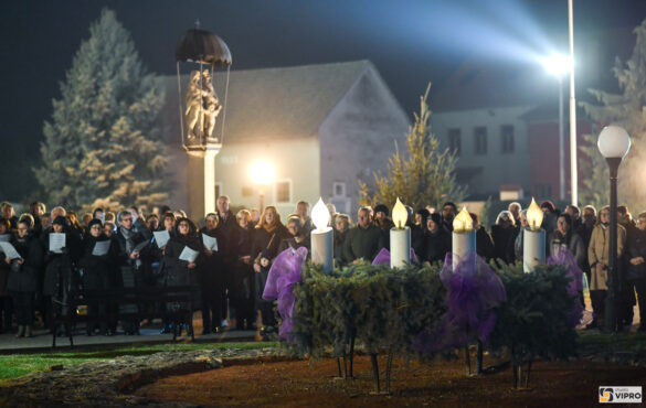 Uz pjesmu Mješovitog pjevačkog zbora Župe sv. Jakoba ap.st., večernju službu časova u Župnoj crkvi sv. Jakoba ap.st. predvodio je župnik dr.sc. Kristijan Kuhar, a prvu je svijeću na adventskom vijencu postavljenom na Trgu sv. Jakoba upali Pero Rojko, predsjednik Mjesnog odbora Otok.