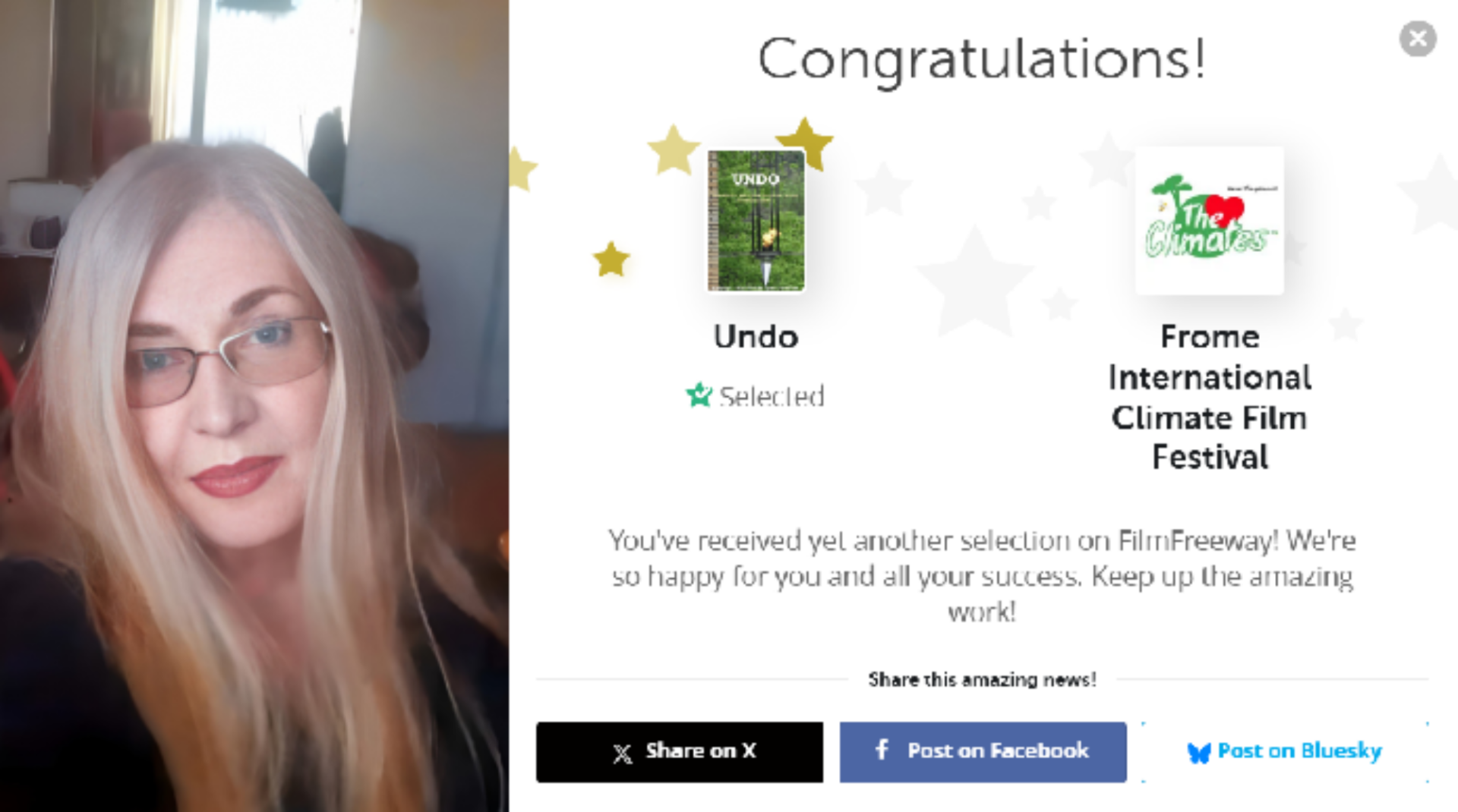 Frome International Climate Film Festival, ima za cilj okupiti globalnu filmsku obitelj i stvoriti platformu za dijalog, suradnju i širenje pozitivnih poruka kroz film. Festival je potpuno besplatan, jer organizatori vjeruju da ne bi smjelo biti nikakvih barijera prema promjenama koje nas vode ka održivijem životu. Također, važno je napomenuti da svi filmovi koji su prihvaćeni za festival, uključujući i film “Poništiti”, dobit će festival laureate i mogućnost da budu prikazani na glavnoj projekciji.