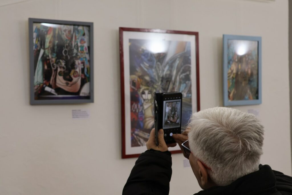 Blaženka Križan, nastavnica likovnih umjetnosti iz Čakovca izložbom obuhvaća svoje stvaralaštvo nastalo tijekom 2024. i 2025. godine u kojem apstraktne oblike i predmete isprepliće u dinamičnim ritmičkim kompozicijama.