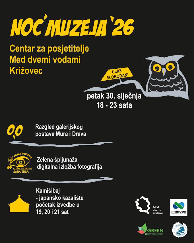 U ovu popularnu manifestaciju Centar za posjetitelje Med dvemi vodami u Križovcu uključit će se šesti put zaredom. Razgled galerijskog postava bit će moguć u petak, 30. siječnja 2026. godine, od 18 do 23 sata.