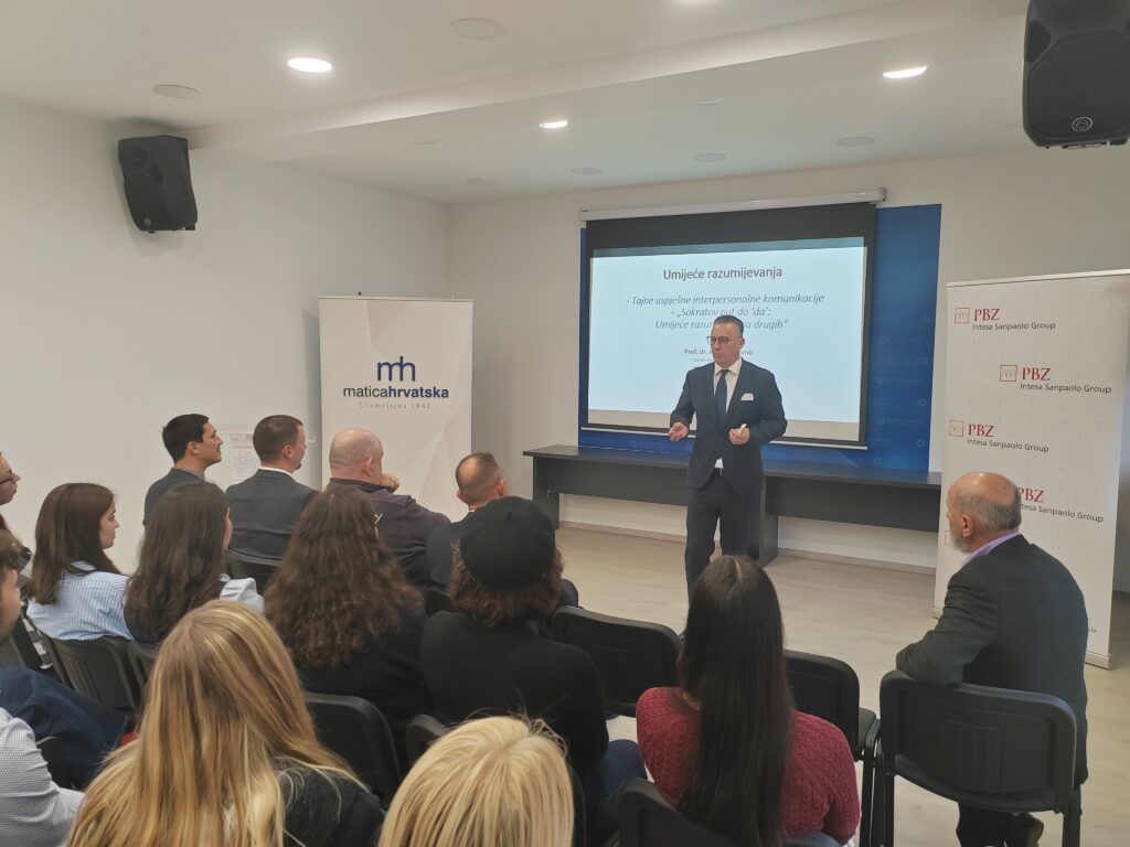 Prvo predavanje održao je profesor Zoran Tomić sa Sveučilišta u Mostaru, govoreći o umijeću razumijevanja i važnosti komunikacije u suvremenom svijetu obilježenom naglašenom kompetitivnošću na gotovo svim razinama. Polaznike škole potom je podučio temeljnim metodama pozitivne komunikacije, uporabe prostora u komunikaciji i sličnim vještinama.