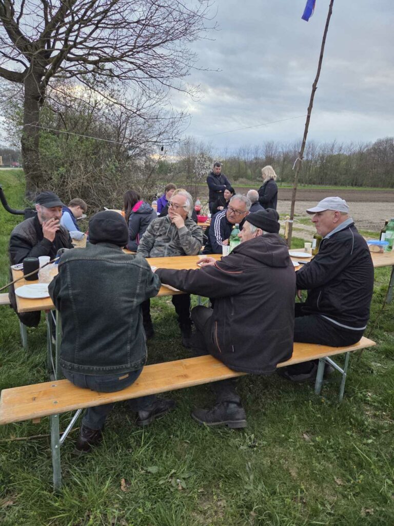 Nekada su se pekla samo jaja i pripremalo „cvrtje“, dok se danas običaji proširuju – uz jaja nezaobilazne su i kobasice, a supruge članova udruge ove su godine pripremile i veliku kajganu od čak 50 jaja.
