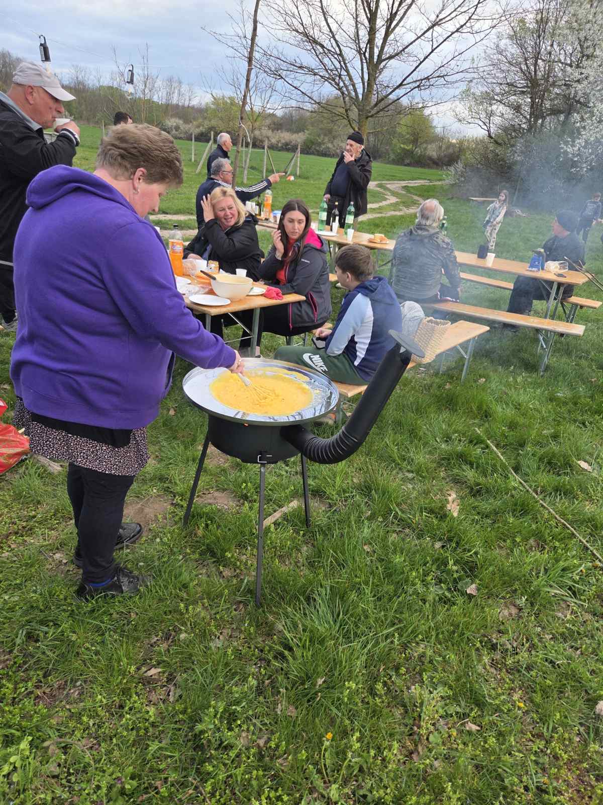 Nekada su se pekla samo jaja i pripremalo „cvrtje“, dok se danas običaji proširuju – uz jaja nezaobilazne su i kobasice, a supruge članova udruge ove su godine pripremile i veliku kajganu od čak 50 jaja.