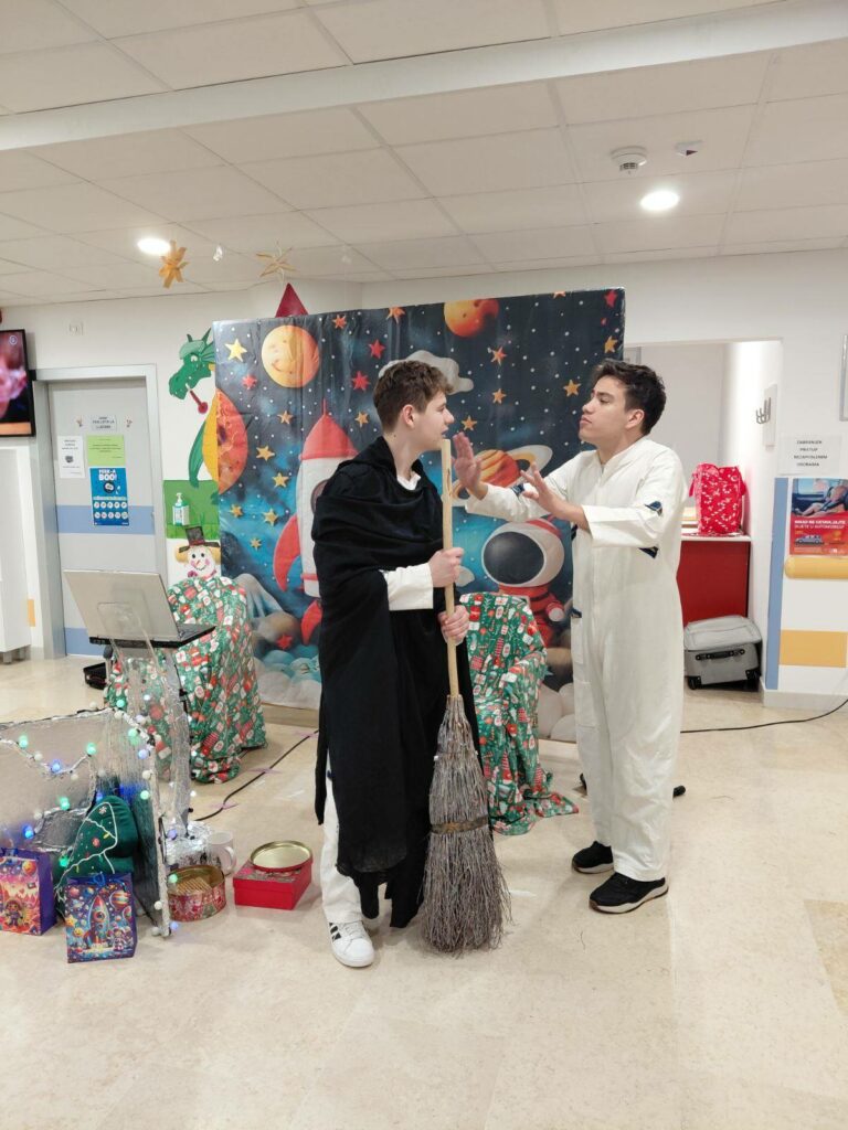 Od trenutka kada su mali glumci zakoračili na odjel, atmosfera se promijenila – u prostor je ušla iskrena radost, razigrana energija i onaj poseban osjećaj da se čuda ponekad stvarno događaju usred običnog dana. Djeca su s oduševljenjem pratila svaki trenutak predstave: od veselih pjesama, duhovitih nestašluka pa sve do nježnih scena koje su podsjetile na snagu dobrote i blagdanske čarolije.