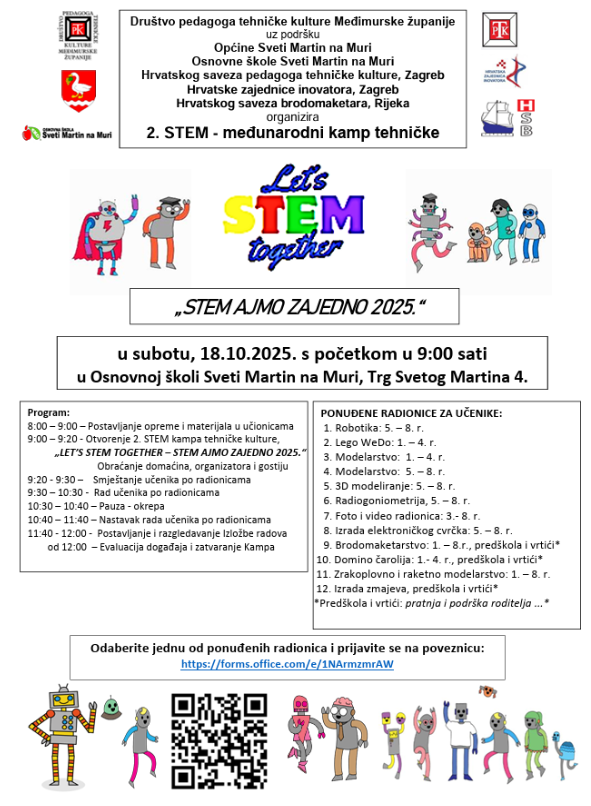 Na raspolaganju su zanimljive i edukativne radionice u sklopu programa „STEM AJMO ZAJEDNO“ koje provodi Društvo pedagoga tehničke kulture Međimurske županije uz podršku Općine Sveti Martin na Muri, OŠ Sveti Martin na Muri te projektnih partnera.