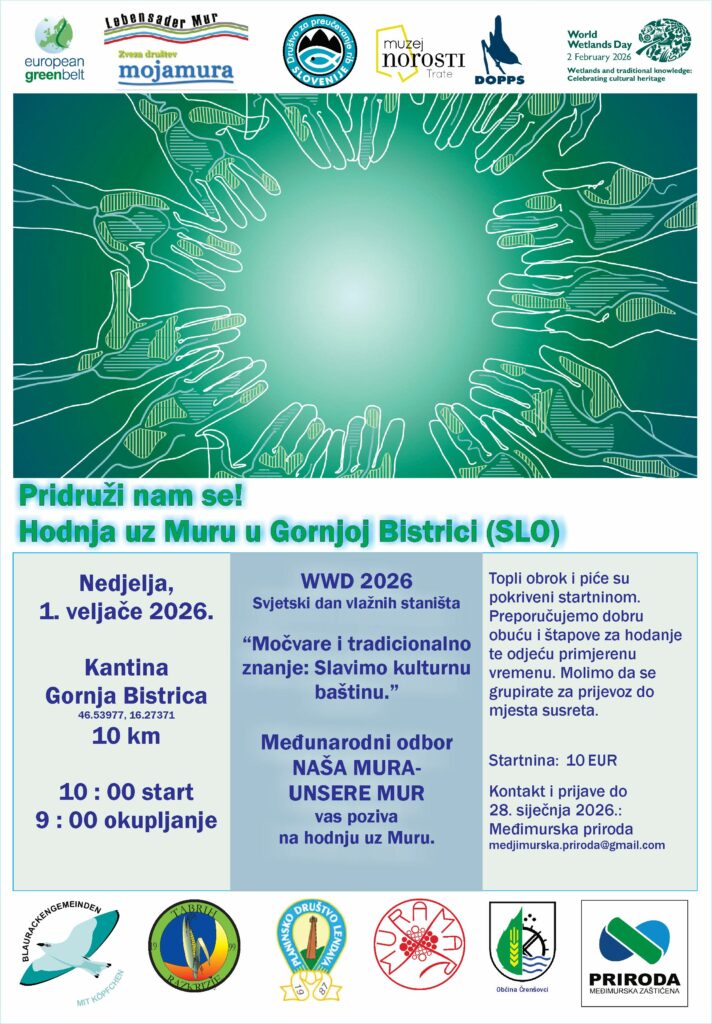 Međimurska priroda – Javna ustanova za zaštitu prirode poziva zainteresirane žitelje Hrvatske, a posebno iz Međimurja pridružiti se ovom međunarodnom događanju i time podržati očuvanje rijeke Mure i njezinih vrijednih močvarnih staništa.