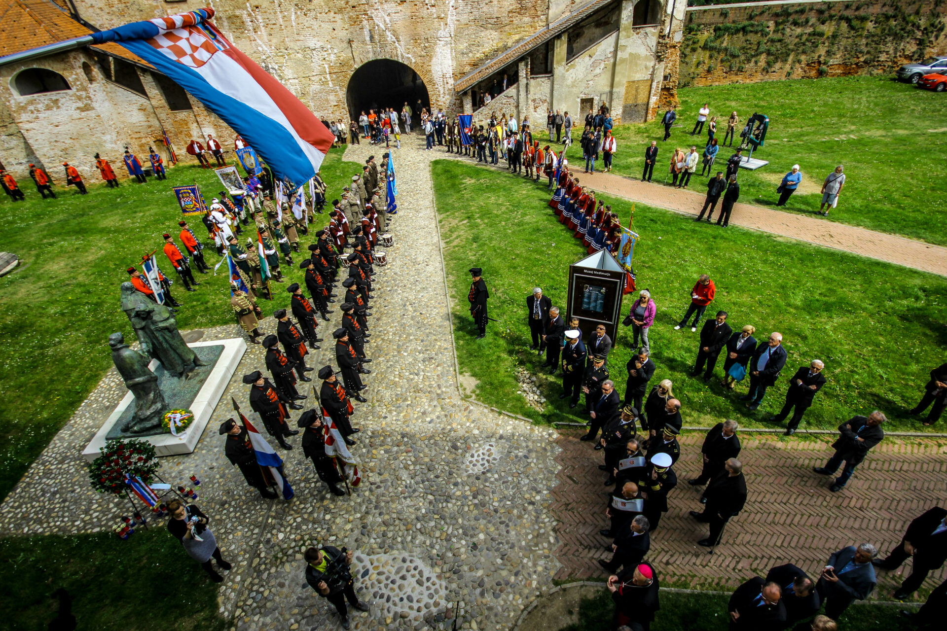 U nastavku se ide do dvorišta Staroga grada gdje će od 12,15 biti položeni vijenci kod spomenika „Oproštaj“. Ovdje će biti prigodni govori, nastupit će Pjevački zbor „Josip Štolcer Slavenski“ a sve će završiti pozdravom Zrinske garde i počasnim plotunima.
