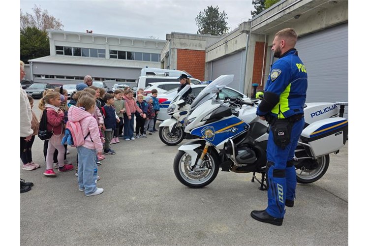 U nastavku posjeta djeca su upoznata s radom prometne policije te im je pokazan vozni park policije, motocikl i druga službena vozila koja policija koristi u izvršavanju svojih zadaća. Djeci je najveće veselje bilo sjesti na policijski motocikl te vidjeti upaljena rotacijska svjetla te čuti policijsku sirenu.