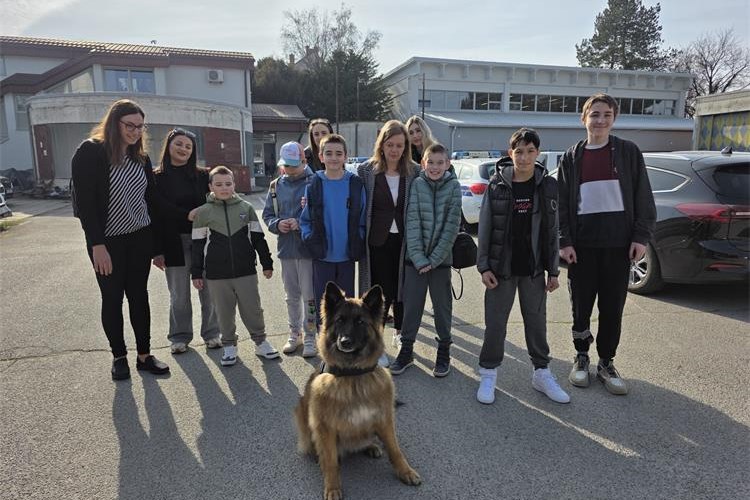 U dvorištu ih je dočekala belgijska ovčarka Loka sa svojim vodičem, a koja je specijalizirana za pronalazak opojne droge, dok su je djeca s oduševljenjem pozdravila.
