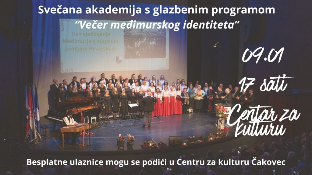 17:00 Svečana akademija s glazbenim programom „Večer međimurskog identiteta“, Centar za kulturu Čakovec (Trg Republike 3, Čakovec) Povodom obilježavanja Dana sjedinjenja Međimurja s maticom zemljom Hrvatskom, na akademiji će nazočiti i predsjednik Republike Hrvatske Zoran Milanović.